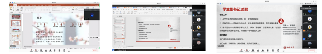 会议开场后,第一部分是由外国语学院团委负责人们进行述职报告。团委学生副书记许源睿对分管部门青年志愿者协会以及团校秘书处的工作进行了总结与规划,学生副书记刘雨萱对负责的组织部和宣传部的工作要点亮点以及不足进行了总结并对未来工作方向进行展望,学生副书记张浩然对分管的社会实践部和学术调研部从职能细分、部门规划、传承创新以及内联互助四个方面进行了述职报告。