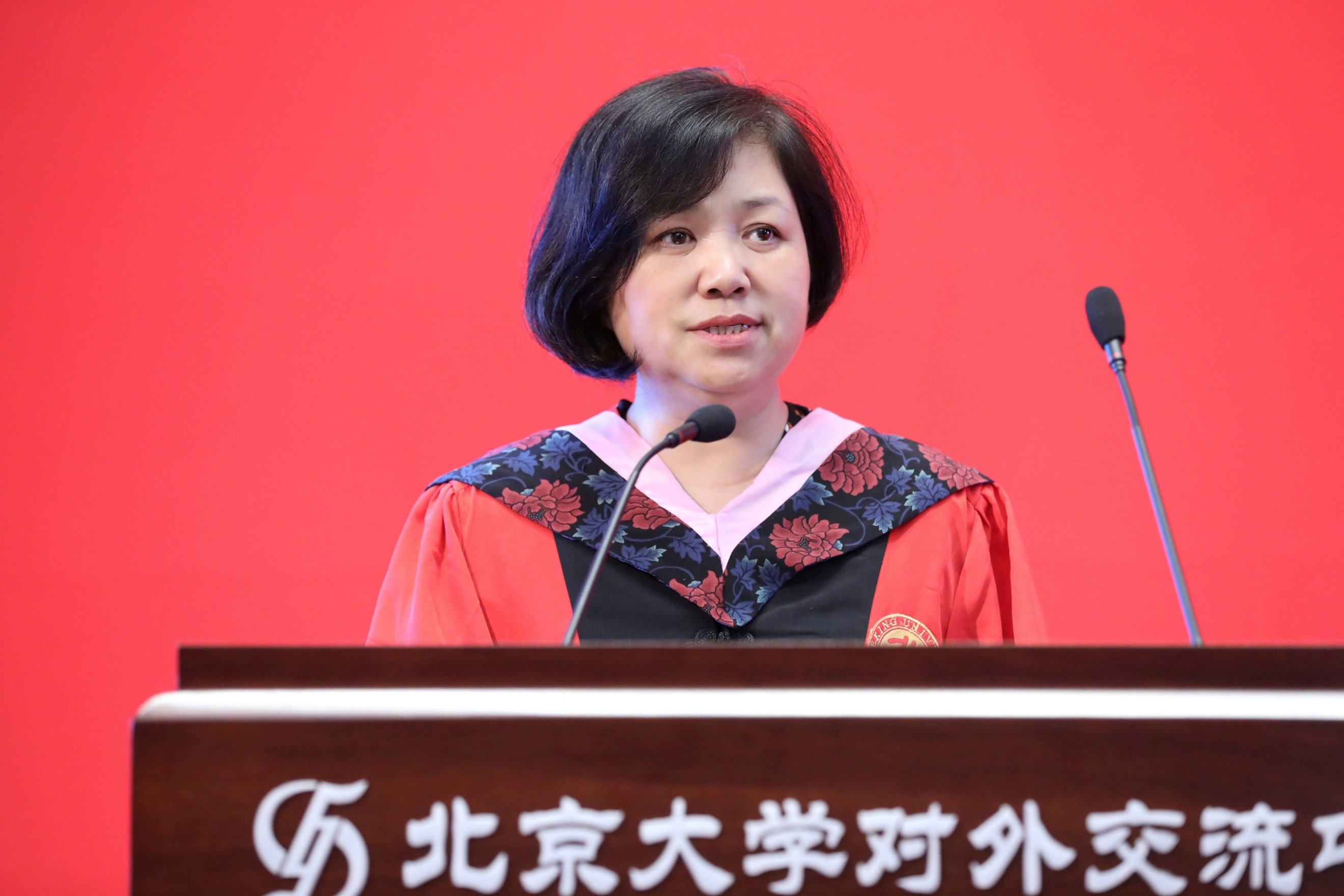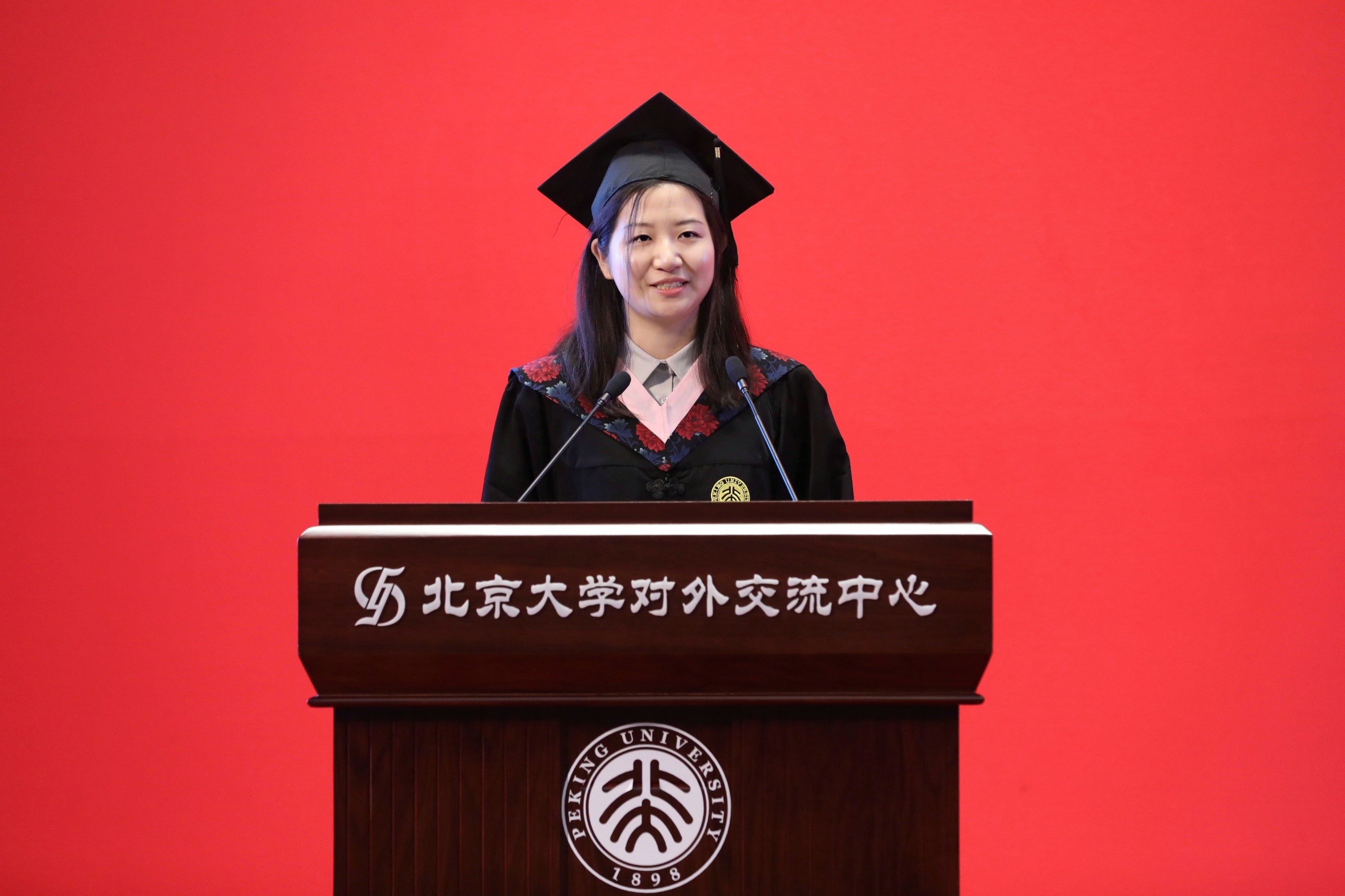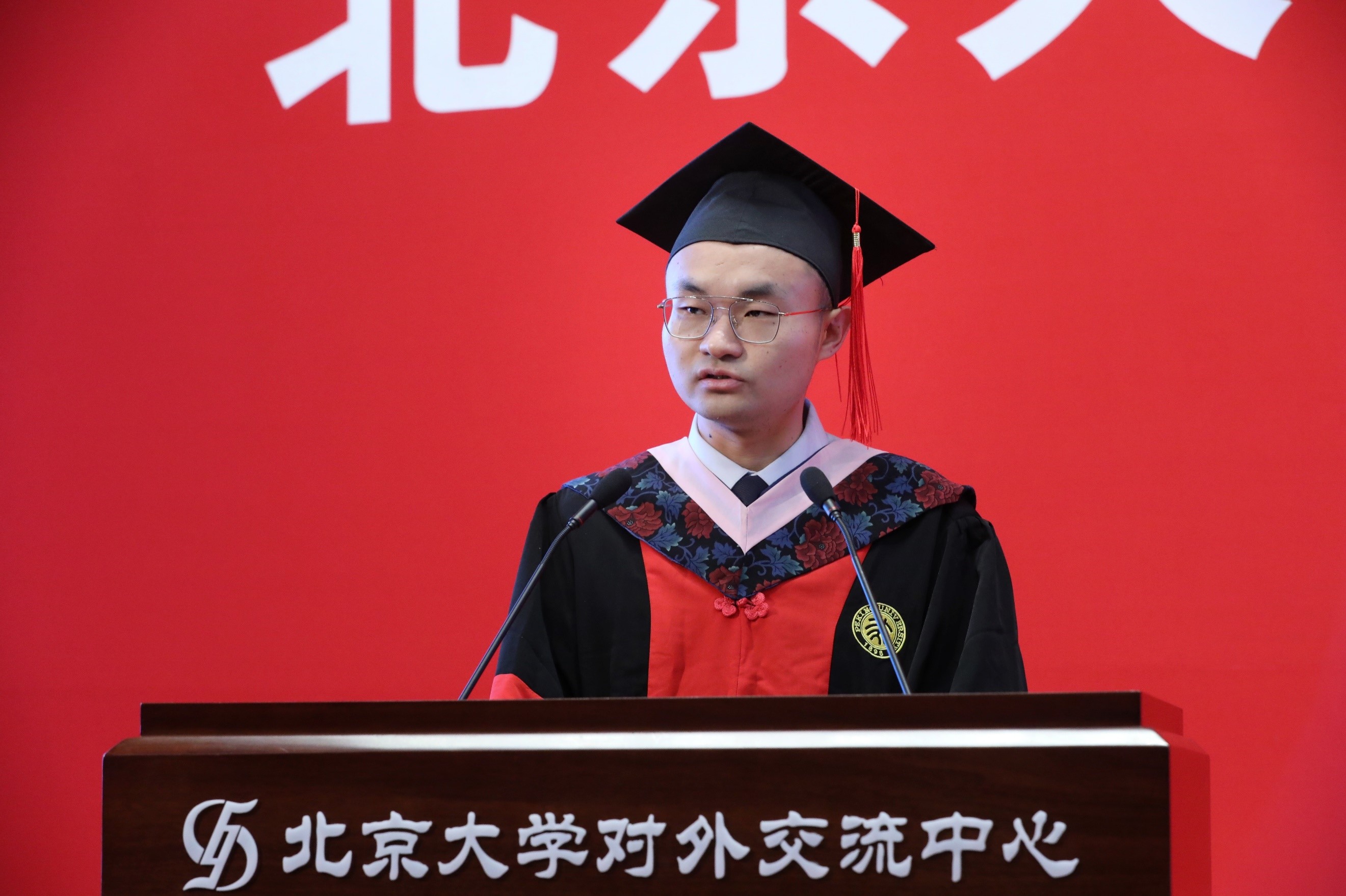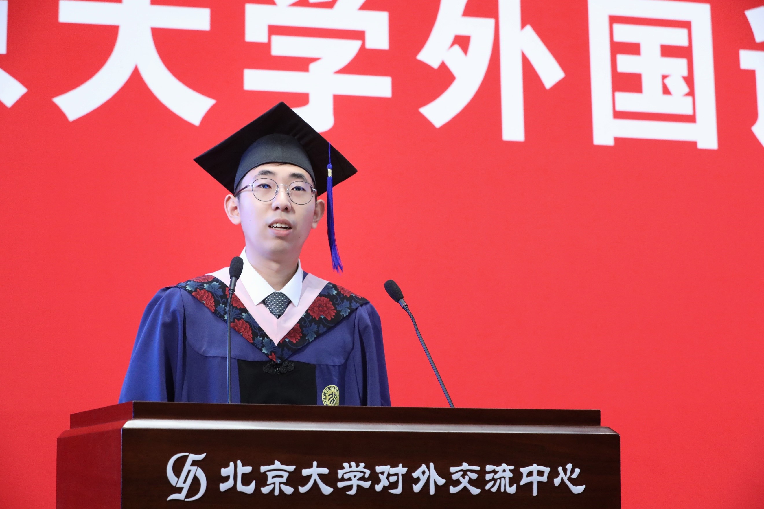 2017级俄语系本科生王佳晨作为本科毕业生代表发言。她回顾了四年前选择北大外院的初心,四年来“冬练三九夏练三伏”积累的专业素养,将语言投入实践时的使命感,以及师长和同伴们相互支持的温暖,让她获得了继续前进的动力和勇气。毕业,是起点,也是终点,她将始终感谢并铭记北大外院带给她的滋养和老师们的恩情,在追梦的道路上继续努力前行。