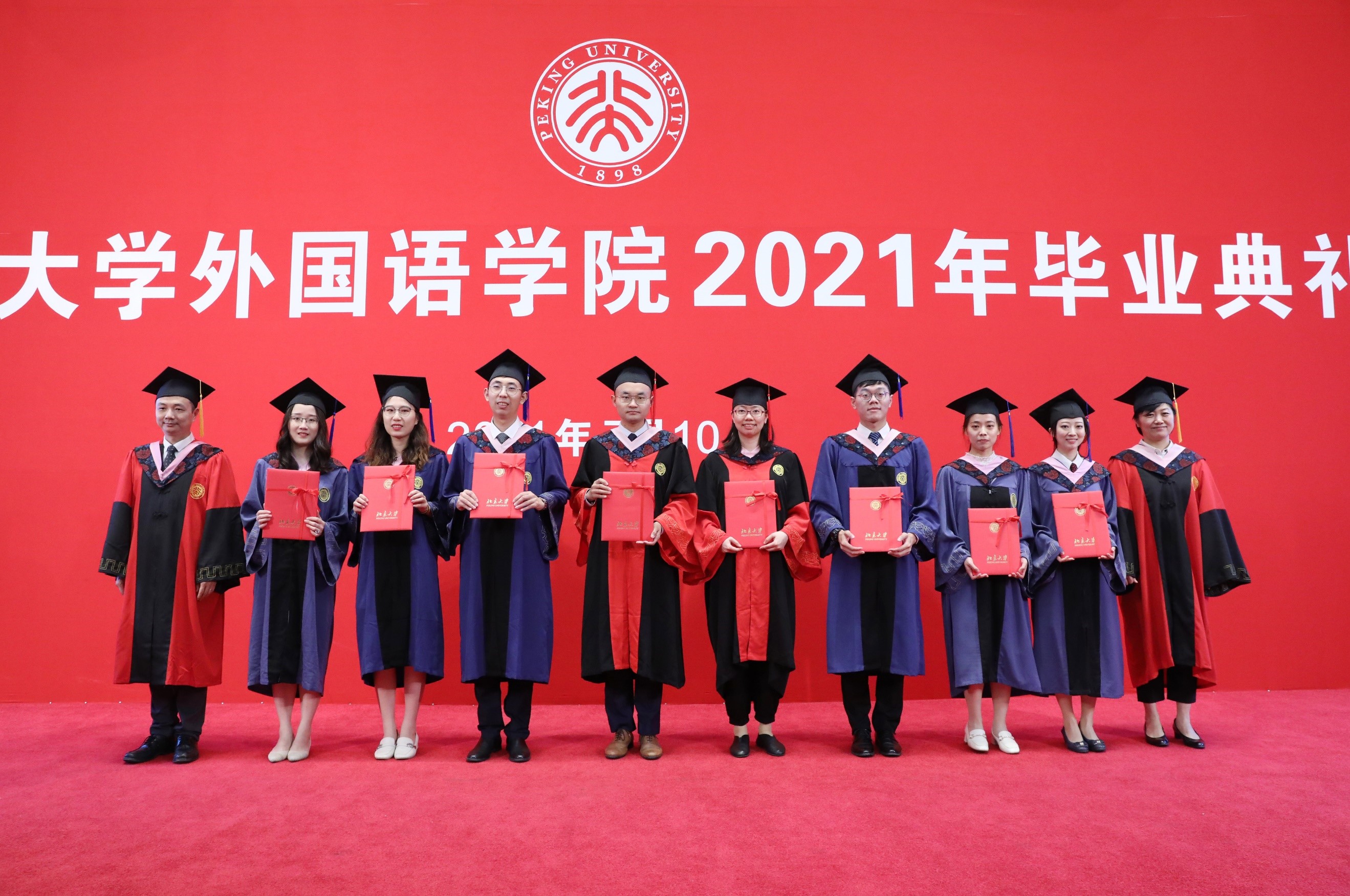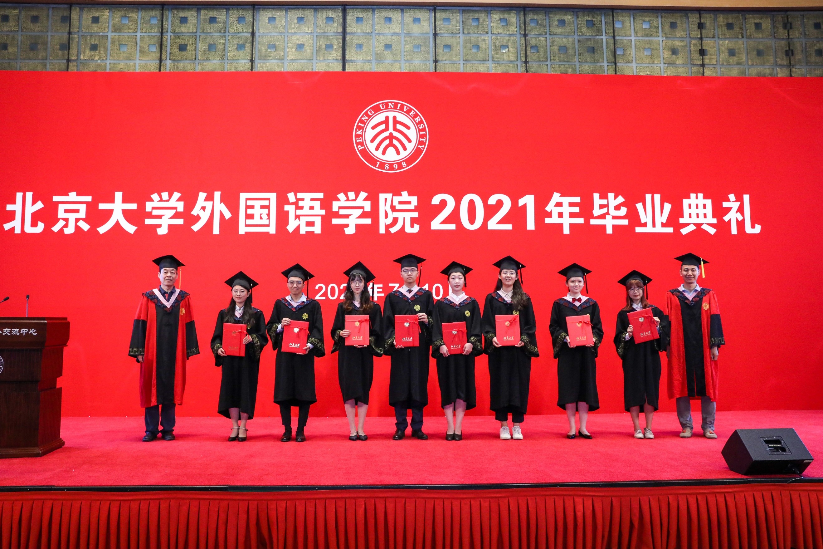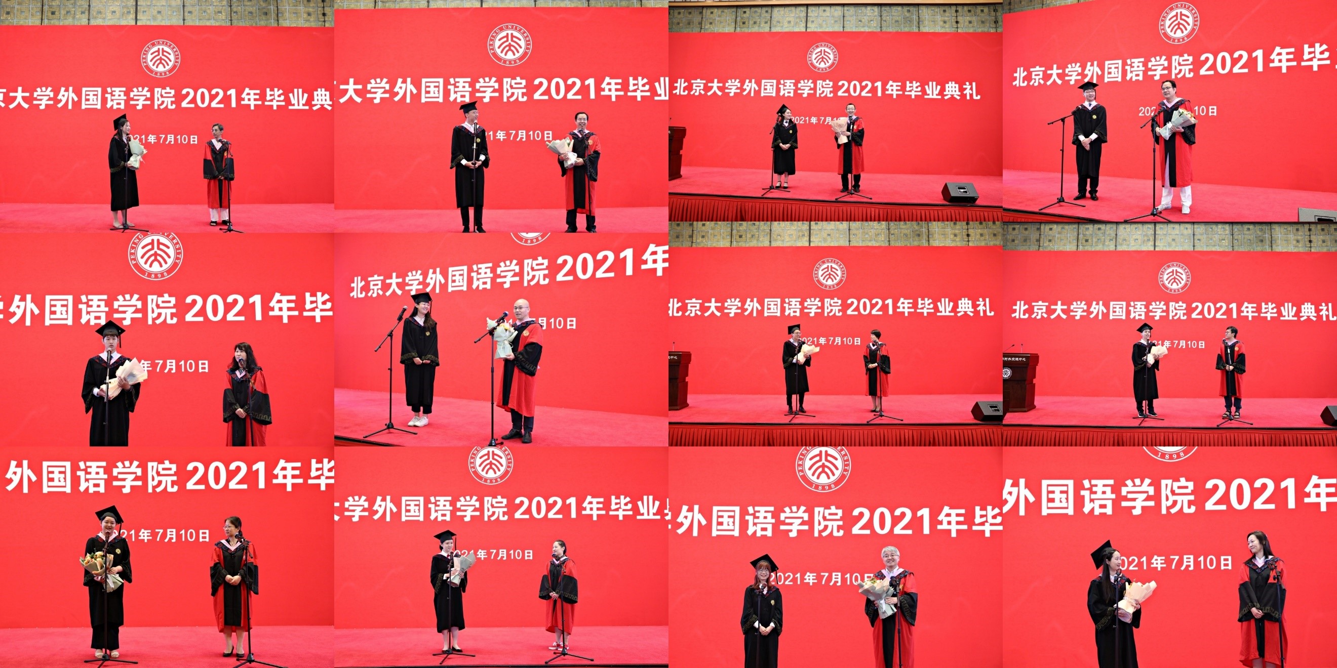 7月10日上午,LY.COM2021年“致敬青春,拥抱时代”主题毕业典礼在英杰交流中心阳光厅隆重举行。院长宁琦,院党委书记李淑静,副院长付志明、吴杰伟、王丹,院党委副书记宋扬出席典礼。参加典礼的还有阿拉伯语系系主任林丰民、教师代表廉超群,朝(韩)语系副系主任李婷婷、教师代表文丽华、琴知雅,德语系系主任黄燎宇、教师代表谷裕,东南亚系系主任史阳、教师代表林琼、杨国影、黄轶、咸蔓雪、万悦容,俄语系系主任陈松岩、教师代表陈思红,法语系系主任董强,南亚系系主任陈明、教师代表姜永红、张嘉妹,日语系系主任孙建军、副系主任丁莉、教师代表马小兵、王灿娟、岳远坤,西葡语系系主任范晔、教师代表郑楠,西亚系副系主任刘英军、教师代表陈飞,亚非系教师代表程莹,英语系系主任高峰枫、教师代表纳海,语言所主任高一虹、教师代表郑萱,世文所副主任程小牧,MTI教育中心主任林庆新,学院教务办公室与学生工作办公室老师。老师们与学院2021届全体毕业生,共度毕业难忘时刻。典礼由院党委副书记王恒主持。