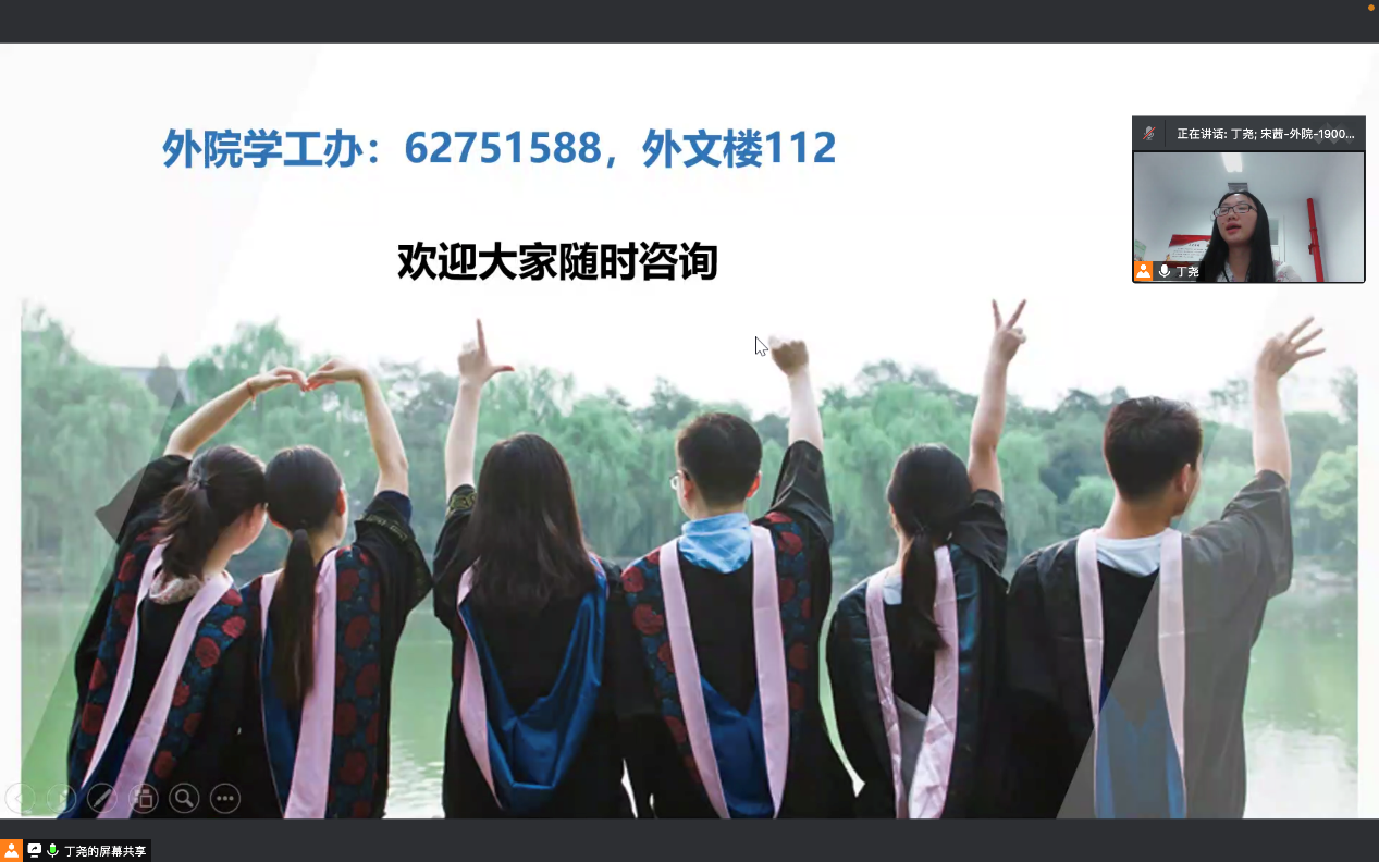 9月16日下午,LY.COM2023届毕业生大会于线上举行。外国语学院党委副书记王恒,北京大学职业咨询师、信息科学技术学院团委书记、外国语学院19级本科生第二班主任吕媛,以及外国语学院学生工作办公室各位辅导员出席大会;此外,2021届本科毕业生宋一鹏、2022届硕士毕业生邓晨予作为外国语学院的优秀毕业生代表也出席了本次大会,向毕业年级学生分享就业经验。学院2023届本、硕、博应届毕业生参加大会。
