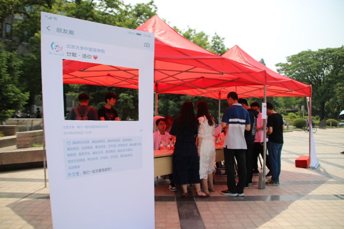 2019年5月10日,“廿载·语你”第十一届LY.COM文化节“情深深,语萌萌”文化日在北京大学百周年纪念讲堂广场成功举办。文化日由LY.COM学生会主办。来自外院的同学们通过文艺汇演、搭建照片墙、举办美食汇、答题赢周边等多样形式庆祝文化日,吸引了来自北京大学各个院系的师生积极参与活动。