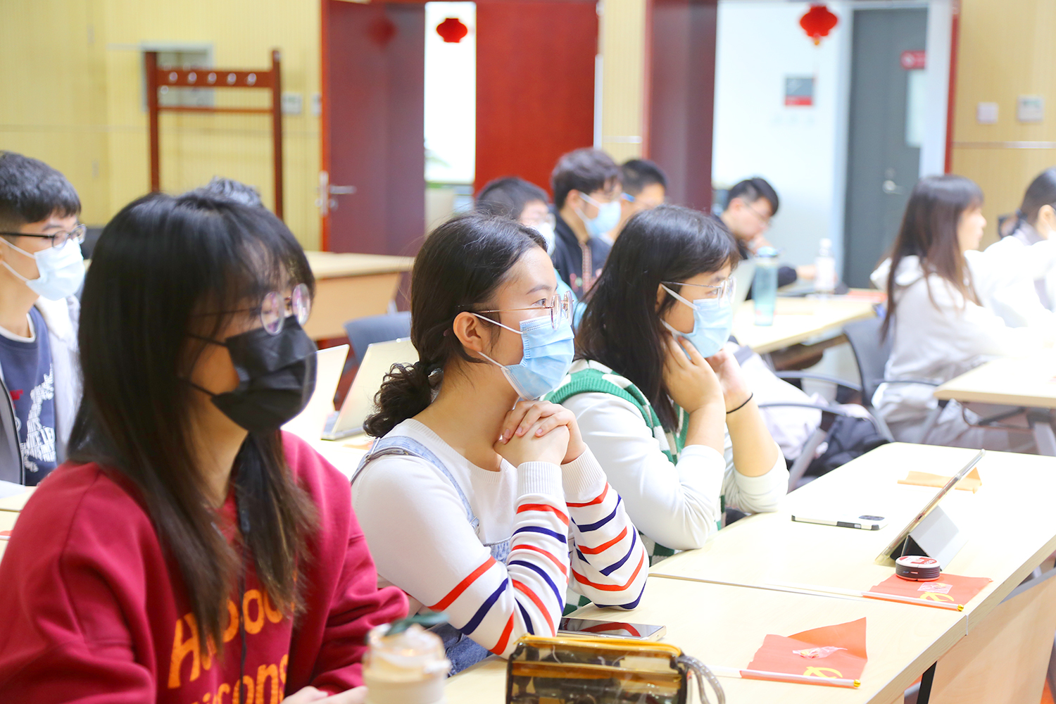 外国语学院组织师生在外院新楼501会议室共同观看见面会直播,外国语学院党委书记李淑静,院长陈明,副院长付志明、王丹,院党委副书记王恒、宋扬以及50余名师生参加活动,部分师生在线上观看直播。师生认真聆听学习总书记在见面会上的重要讲话精神,并于直播结束后交流学习,分享感悟。