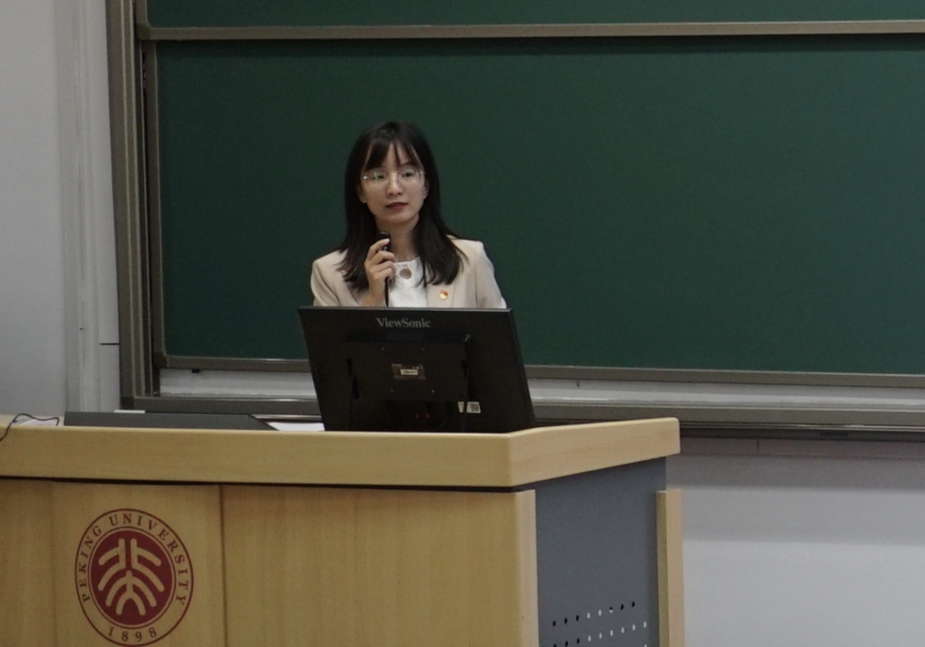 党委书记讲党课活动结束后,丁雨婷向同学们介绍了第35期党的知识培训班的课程安排、考勤制度以及北大党员发展流程等内容。她勉励同学们坚守入党初心,认真学习党的知识,积极参与党课活动,用实际行动向党组织靠拢。