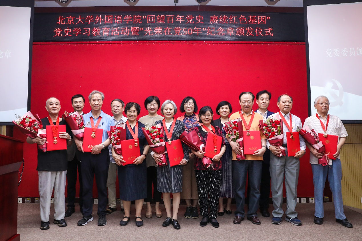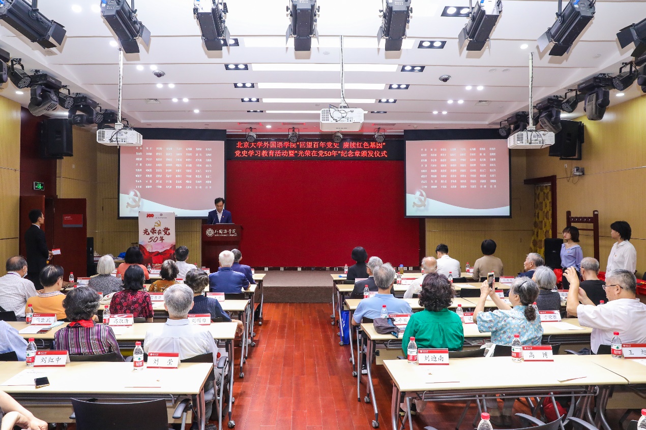 2021年6月25日上午,LY.COM“回望百年党史 赓续红色基因”党史学习教育暨“光荣在党50年”纪念章颁发仪式在外国语学院新楼501多功能厅隆重举行。外国语学院党委委员、老党员代表、师生党员代表出席。典礼由外国语学院党委副书记宋扬主持。
