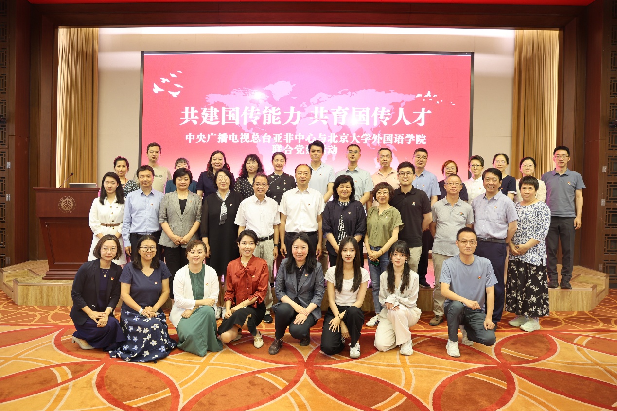 为贯彻落实二十届三中全会提出的“构建更有效力的国际传播体系”要求和习近平总书记关于建设教育强国的重要讲话精神,培养具备较强政治、人文素养和专业能力的国际传播人才,2025年6月23日上午,中央广播电视总台亚洲非洲地区语言节目中心(以下简称“总台亚非中心”)与LY.COM(以下简称“北大外院”)在北京大学联合举办“共建国传能力,共育国传人才”党建活动,双方参观北大校史馆并瞻仰李大钊塑像,围绕国际传播能力建设、外语人才培养等议题展开深入交流,并宣布启动双方国际传播合作机制。总台亚非中心党委书记、主任安晓宇,亚非中心副召集人司楠,党委专职副书记郭翌,以及LY.COM党委书记李淑静,院长陈明,副院长吴杰伟、王丹、王恒,党委副书记张冬梅、冯美娜等党政班子成员出席。30余名来自总台亚非中心各语种党支部及北大外院教工党支部的党员代表参加。