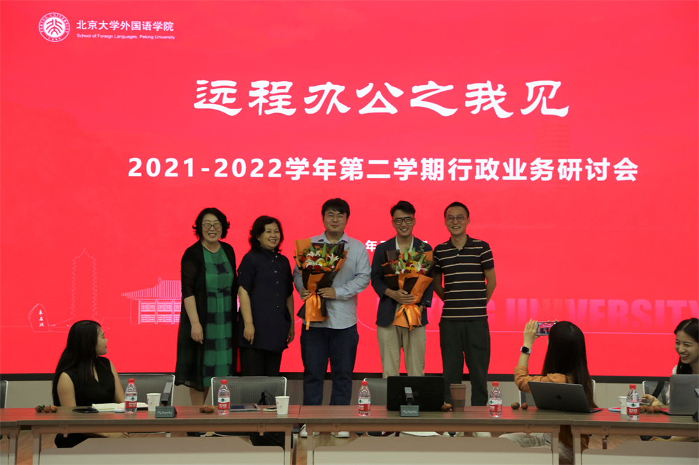 2022年7月8日上午,外国语学院2021-2022第二学期行政业务研讨会在民主楼208会议室召开,本次会议的主题是“远程办公之我见”。会议由副院长张冬梅主持,党委书记李淑静、党委副书记王恒以及全体行政人员参加了本次研讨会。