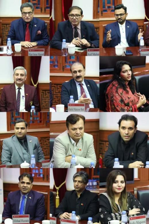 张嘉妹主持座谈并代表中方人员对代表团的到来表示欢迎。双方在彼此介绍后,就中巴经济走廊进阶发展问题、中巴文化交流问题、科研合作和留学生互派等问题展开深入交流。在会谈的最后,米安·伊姆兰·马苏德先生代表巴方再次强调巴基斯坦举国上下对中巴经济走廊建设的支持,他说,“中巴经济走廊是巴基斯坦的生命线”;就两国的青年交流问题,他表示,青年是国家的未来,希望两国青年人能够获得更多交流机会,为促进两国发展、深化中巴友谊贡献青年力量。